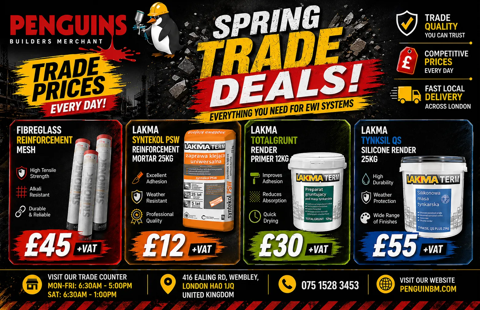 EXCELLENT Based on 14 reviews Posted on MAR KOTrustindex verifies that the original source of the review is Google. Really good customer services, nice people, Barbara it was very helpful.Posted on Costisanu IonutTrustindex verifies that the original source of the review is Google. Good stuffPosted on Kaveh KafaiTrustindex verifies that the original source of the review is Google. Really good service and fast delivery. Good quality materials.Posted on Thanes KumarTrustindex verifies that the original source of the review is Google. Good servicePosted on SACHIN SABU KOSHYTrustindex verifies that the original source of the review is Google. Amazing customer servicePosted on Iani IurecaTrustindex verifies that the original source of the review is Google. Excellent store with a great selection of EWI. Fantastic price and delivery on the same day.Posted on Krystian KadelskiTrustindex verifies that the original source of the review is Google. Bardzo miła i profesjonalna obsługa, najlepsze ceny, szybka dostawa, produkty wysokiej jakości. Polecam!!!Posted on Shyam PatadiaTrustindex verifies that the original source of the review is Google. Really nice range of products for rendering and very courteous and professional services always recommend to all. If f you are trader or home owner this is the place for all your rendering products always recommends them.Posted on Zosia STrustindex verifies that the original source of the review is Google. A very good choice of high quality products, at a great price. Staff is very helpful. Highly recommend!Verified by TrustindexTrustindex verified badge is the Universal Symbol of Trust. Only the greatest companies can get the verified badge who has a review score above 4.5, based on customer reviews over the past 12 months. Read more
