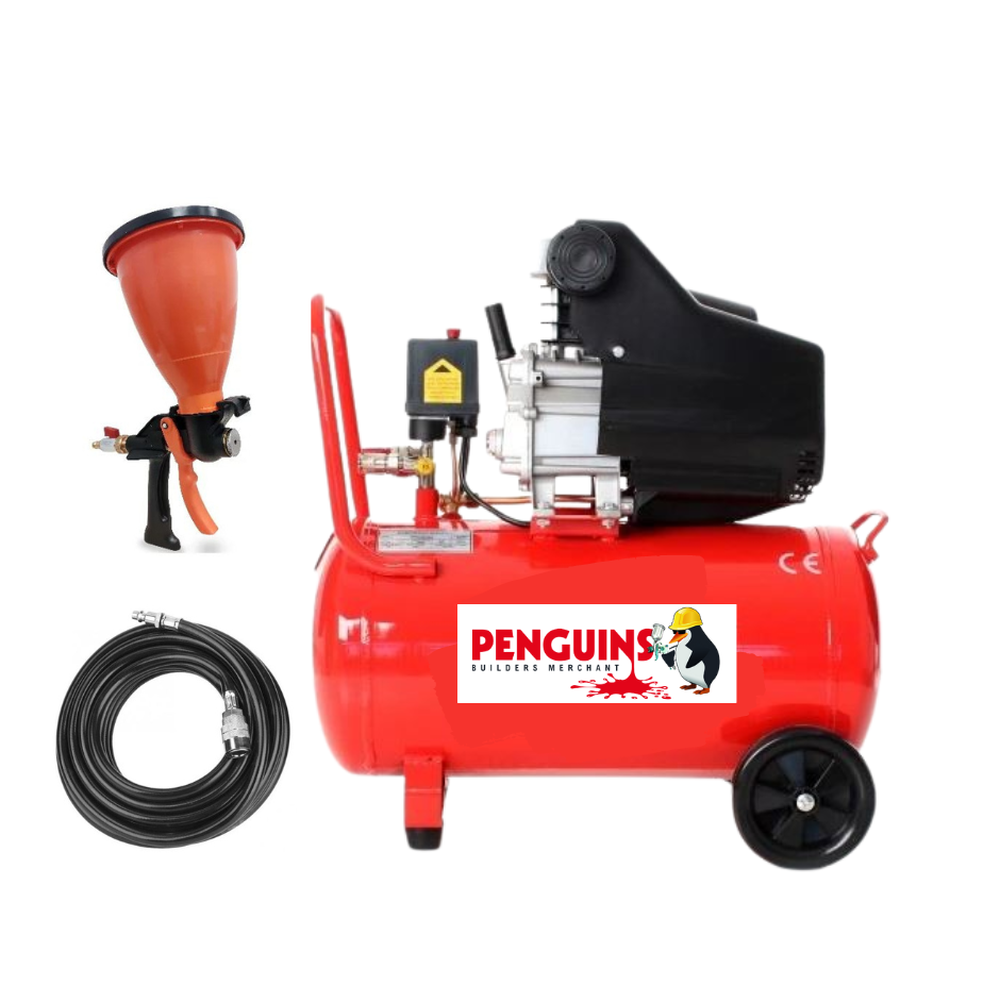 With a powerful 2.8 kW / 3.8 HP air-cooled electric motor, a 50-liter tank, and cast iron cylinders, this compressor is engineered for longevity and consistent output. The set includes essential pneumatic accessories—such as a paint spray gun, oiler, inflating gun, and more—making it the ideal all-in-one solution for workshops, garages, and construction sites.